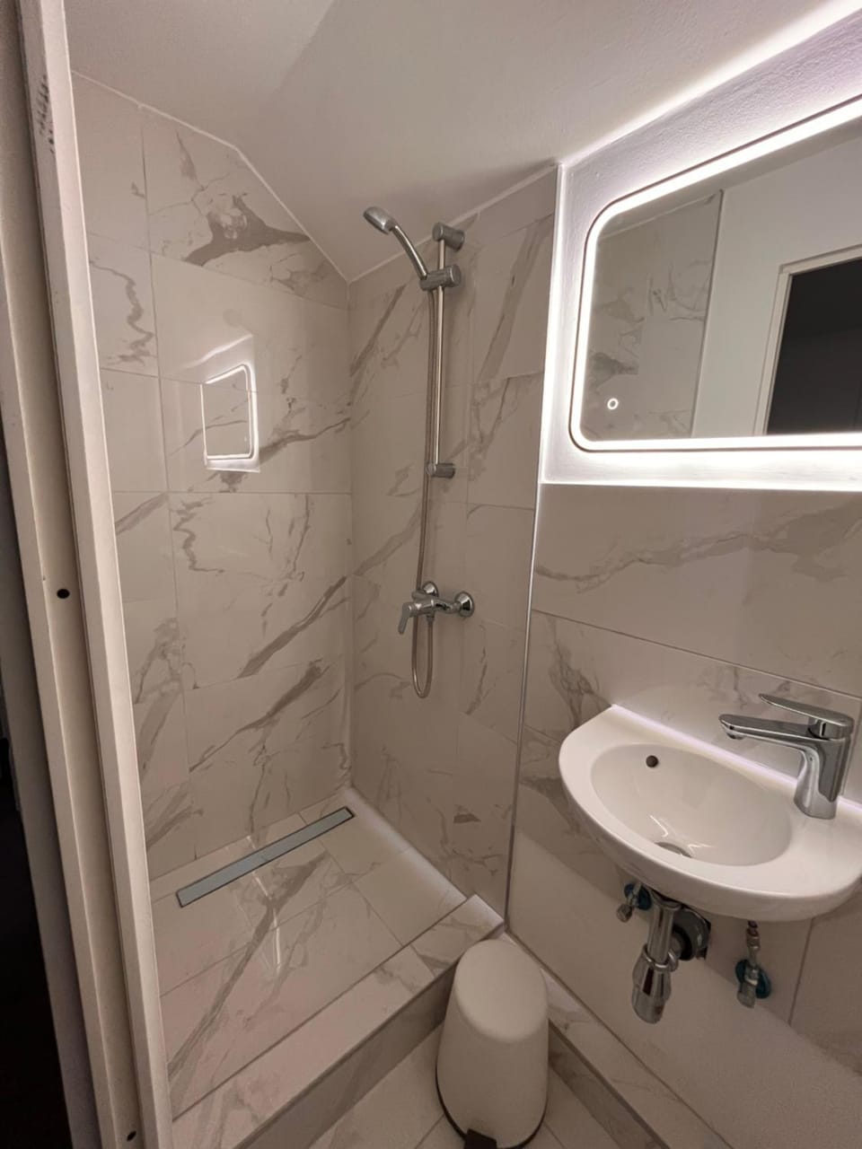 Spiegel im Zimmer fehlt, Duschkabine im Flur nicht abschließbar, Stolperfalle Stufe im Bad nicht sicher