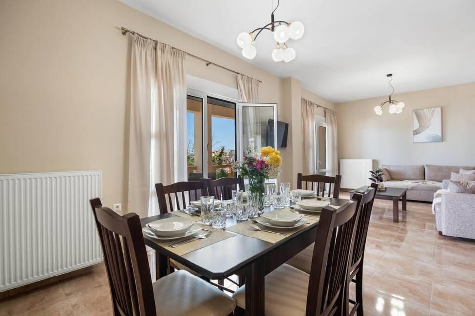 The most hospitable people I have ever met. Patelakis family met us with desserts and wine, cooked a dinner for us, and were super nice and welcoming. They treated us like we're part of their family. The apartment is huge, with two bathrooms, and almost every room has a balcony + a giant terrace in the living room with the sea view. We had 6 people and everybody had a comfortable bed.