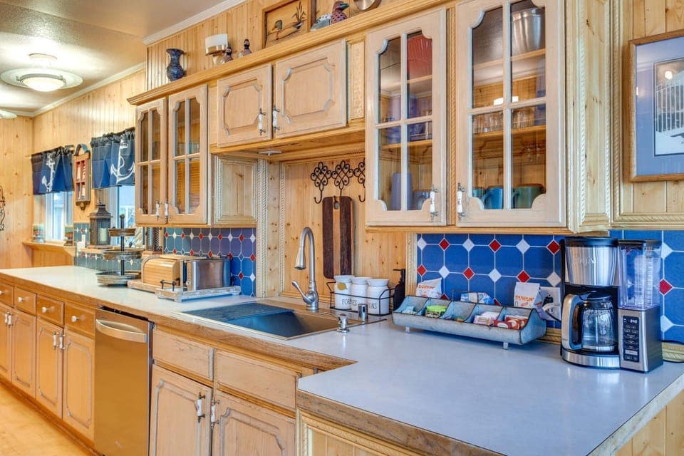 This home is amazing and a beautiful location. The home decor was very themed but done so tastefully. Beautiful views of the lake from the expansive windows in the back of the home. Large deck outside overlooking the lake. Perfect place to drink your morning coffee. Access to the lake was amazing but can be difficult for some due to the step cement stairs but if you can make it down it's well worth it. Sit on the dock and take in the breathtaking views of the lake and Mount Rainer or a bald eagle flying overhead & diving for fish. If you don't use the provided life jackets and kayaks just wade in the water or enjoy the small beach created by the owner with a fire pit and wood provided. This was a great location when we visited for a celebration of life gathering and afterward, our family came together to enjoy this beautiful home. Thank you