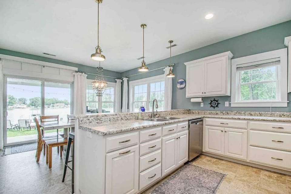 Experience vacation in Indiana with our House, Green Diamond Retreat: Epic Lakefront Oasis for 30, 6BR, Boat Slip, Kayaks. Enjoy amenities such as No pets allowed, Family friendly and Non-smoking, and more.