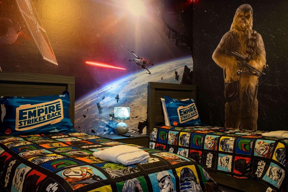 Looking to create some memories in Kissimmee? Look no further than our House, Spider-Man Game Room, Avatar Theater & Star Wars Bunk Beds – Minutes to Disney. Enjoy top-rated amenities including Family friendly, and more.