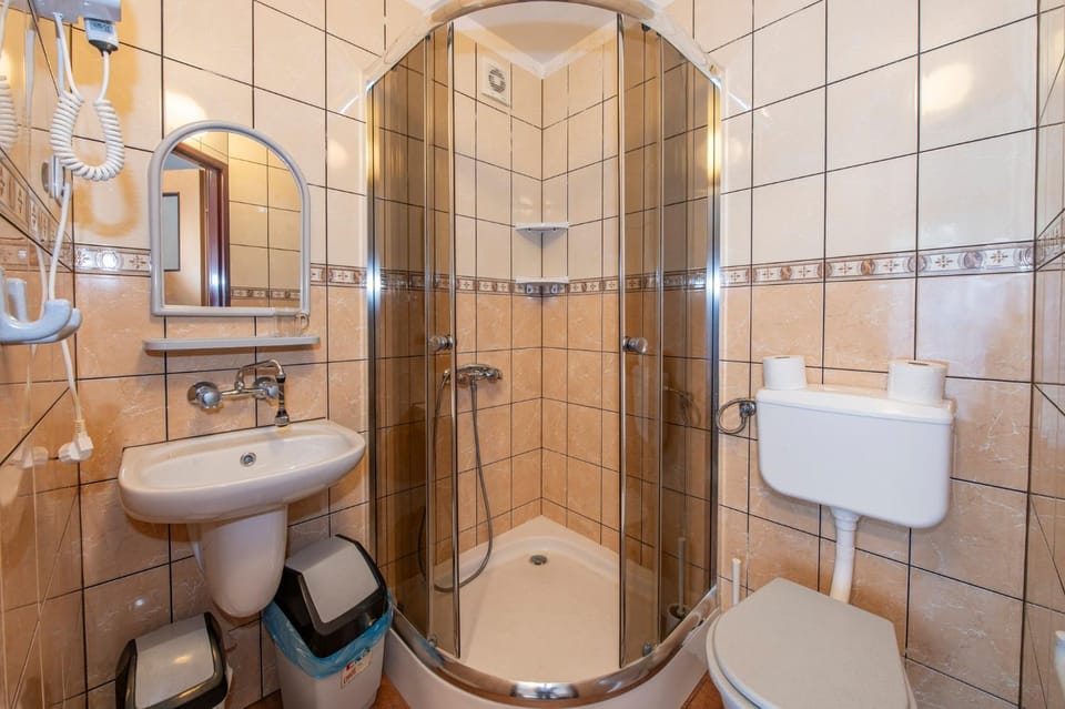 Co do pokoju, zmieniałabym łóżka i meble, mają już swoje lata. Były czyste ręczniki, czego nie było w opisie, w łazience suszarka na plus.