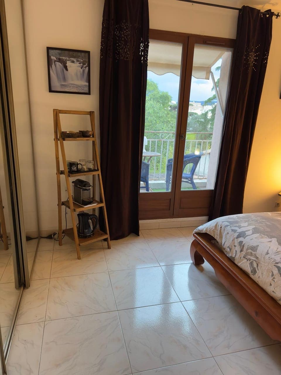 idealement situe proche de cannes mandelieu juan les pins....tres belle chambre decoree avec gout avec frigo nespresso de quoi faire son petit dejeuner et clim appreciable dans le midi , tv avec toutes options ..nos hotes sont adorables et on tout fait pour nous faciliter le sejour un grand merci pour tout nous recommandons vivement ce lieu et nous reviendrons sans probleme .prix tres convenable tres raisonnable en plus