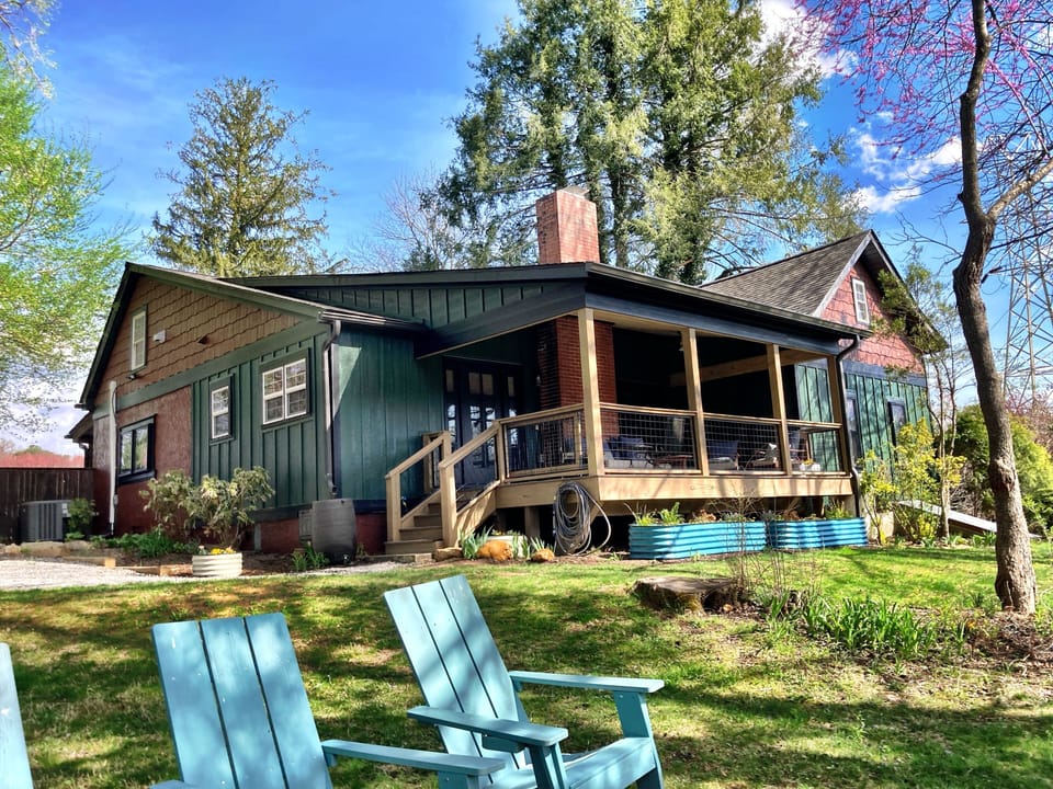 Hello and welcome to this historic, cozy, yet spacious riverside cottage near Asheville, North Carolina on the Pigeon River! This house has been a vacation destination for the past eight years, and we are thrilled to be hosting.
