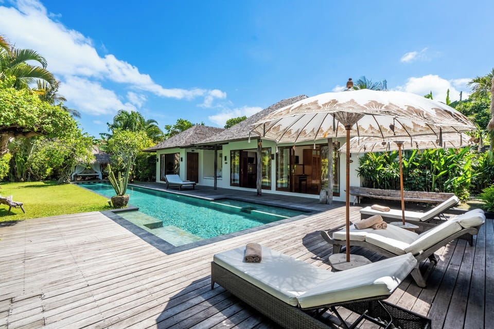 The villa is a luxurious and tropical getaway from the crowds. Just a moment’s walk from Eat Street, you can dine out every night with your own island home to return to. With 5 cozy bedrooms, spacious open living areas, a private swimming pool, and luscious gardens, you can spend long days basking in the hot island sun and dipping into the refreshing waters of the pool. Each of the bedrooms is a sumptuous retreat with en-suite bathrooms, lavish beds, and homey amenities.