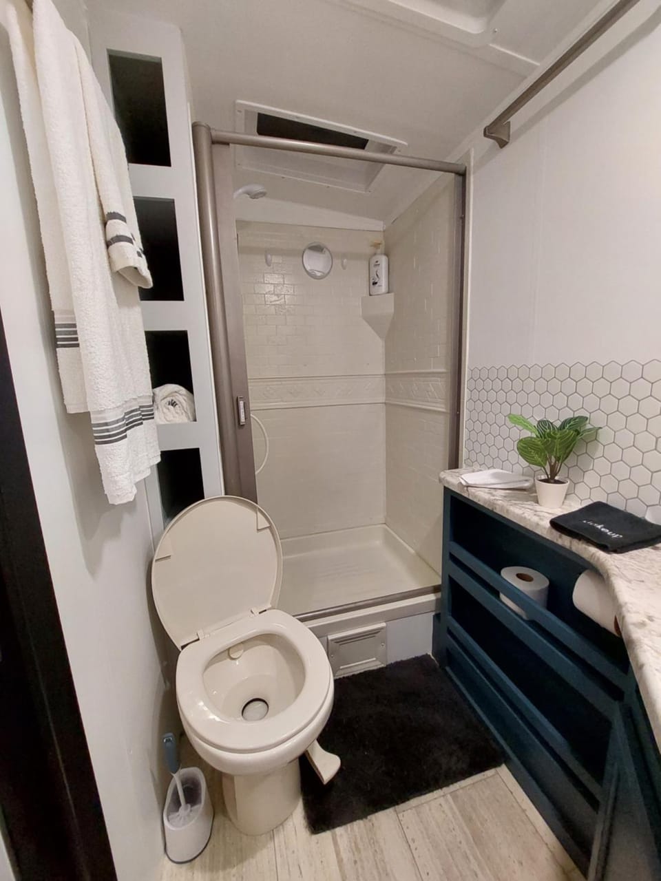 Very clean, easy access to the camper! It gets dark early so the motion lights were really helpful. Super comfortable bed, water heat/pressure was great in the shower, communication with the host was excellent!