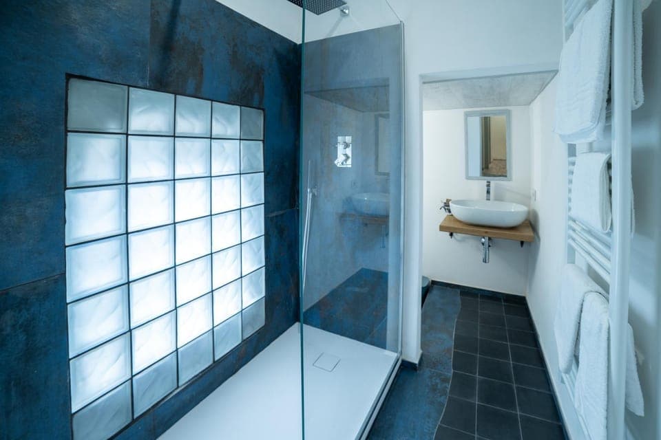 Łazienka bardzo specyficzna z licznymi schodkami, trzeba uważać.