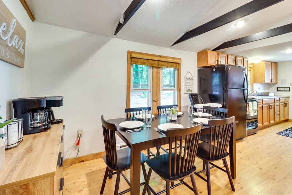 What amenities are available at Walk to Beaches Tree-Lined Pocono Lake Retreat!?