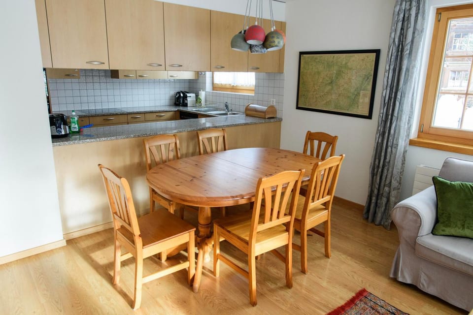 Sehr helle und gemütliche Wohnung an perfekter Lage (Bushaltestelle, Supermarkt, Restaurant in Gehdistanz). Wir konnten sogar mit den Skis bis vors Haus fahren. Den Komfort eines Skiraums und einer Tiefgarage haben wir sehr genossen.
