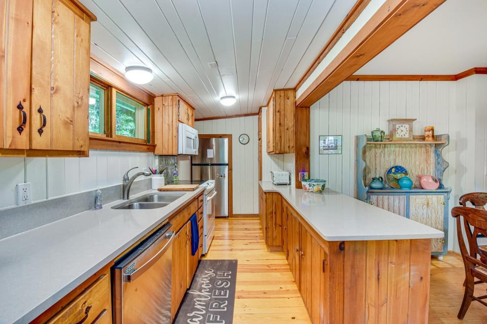Soak up the beauty of Highlands in our Cottage, 2 Living Areas + Fireplace: Mirror Lake Cottage!. With a range of amenities such as Dryer, Bar and Fan, you'll feel right at home.
