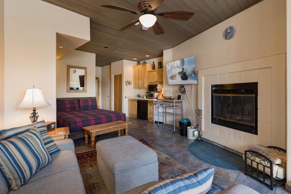 Indulge in a peaceful retreat at Grand Mountain Getaway (#104) | Views, Fireplaces, Near Ski, Deck, Dogs, EV, our elegant Apartment in Purgatory. Enjoy amenities including Dryer, Fireplace and WiFi/Internet, and more.