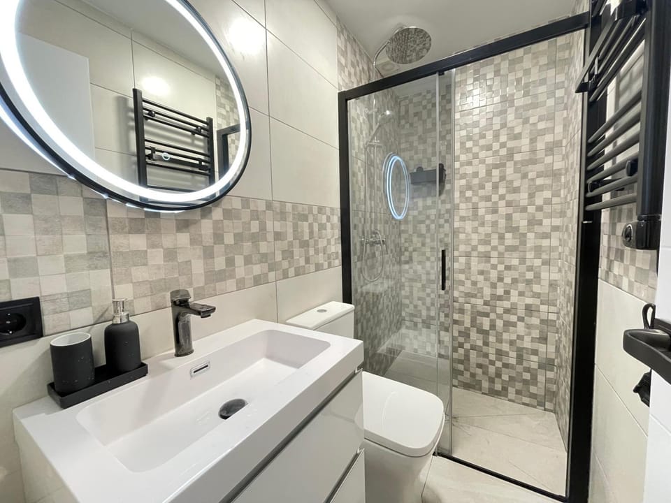 Appartement très propre. Deux chambres fermées séparées par la cuisine/salon. Deux salles de bain. L'appartement bien situé. Il était facile de se rendre au centre-ville en autobus. Aussi, un marché se trouvait à 1 minute à pieds. Communications avec le locateur très faciles. Il a répondu rapidement à mes messages.