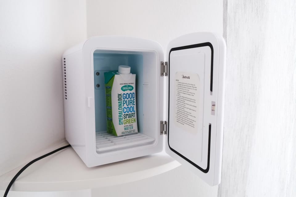Sempre nell'atrio era disponibile un mini frigorifero da hotel che per 3 camere è a mio parere insufficiente per disporre delle bottiglie d'acqua grandi e ghiaccioli per borsa frigo da portare in spiaggia. Nel complesso un'ottima soluzione per brevi periodi.
