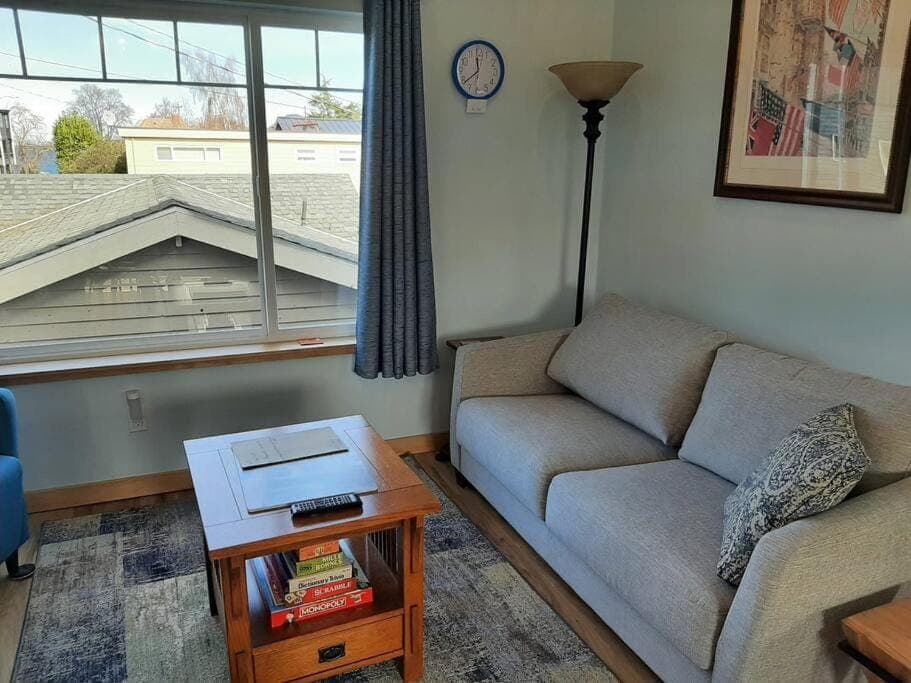 This was the most well appointed rental we have had, and we have had quite a few. As other's have commented, the kitchen supplies (utensils, spices, snacks, condiments, coffee- I could go on and on) were amazing. The only missing items would be food plastic wrap (which may have just been overlooked in the last restock, plenty of other food storage options), a metal colander for steaming, and a kitchen thermometer. But really, hats off to the host for supplies. The bathrooms were likewise very well appointed. The location is really special, a very quiet alleyway to access by car and just blocks from Alki Beach, a very vibrant Seattle scene reminiscent of a southern California beach scene. The host, Mardy, stopped by to say hello, we didn't talk for long as I was busy in the kitchen preparing a meal, but I bet he would have some good stories to tell.