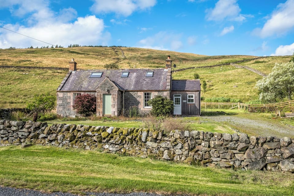 Amenities: Oil-fired central heating. Electric oven and hob, microwave, fridge, freezer, washing machine. Smart TV, WiFi. Fuel, power, and starter pack for woodburning stove inc. in rent. Bed linen and towels inc. in rent. Private driveway for 2 cars. Wrap-around, enclosed lawn with furniture. One well-behaved dog welcome. Sorry, no smoking. Shop 5.2 miles, pub 5.1 miles. Note: Limited headroom in the upstairs bedrooms; please be aware. Note: The double bedroom is very compact. Note: There are two steps up into the home