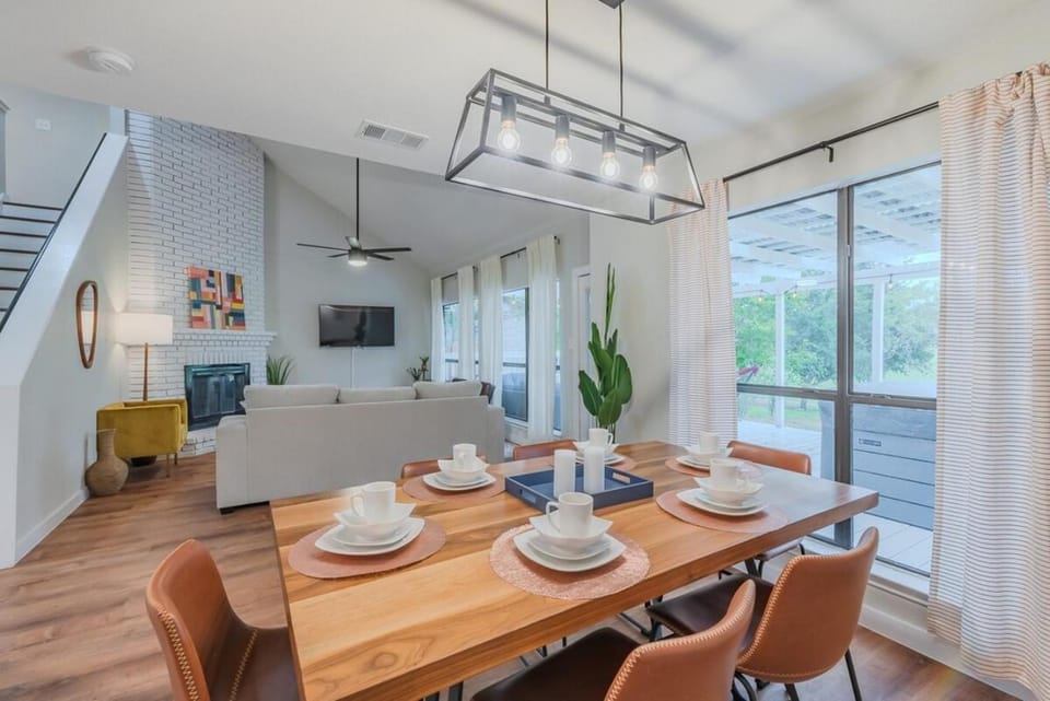 This house is located just 15 - 20 minutes from downtown San Antonio. It's a nice and quiet neighborhood and the fact that it has a golf course behind it means that you have a nice open view from the back deck and privacy at night for relaxing dips in the hot tub. It has everything one could need including a pool table, foosball table, video game, access to Netflix, Hulu etc...., a dishwasher, large refrigerator etc... It was a great place to stay.
