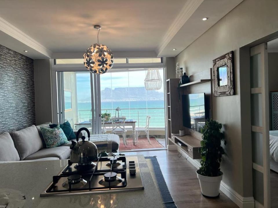 Outstanding all round views of the sea and Table Mountain. Modern, well equipped apartment with a comfortable bed