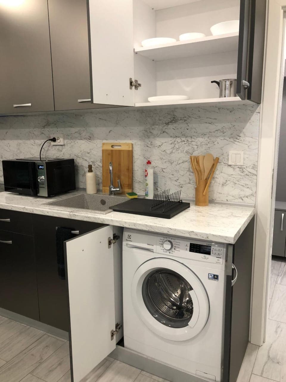 Апартамент чистый ,новый ,комфортный.Есть абсолютно всё для комфортного пребывания . Даже стиральная машина.Большой холодильник ,большой шкаф .Есть место в подземном паркинге ,это одно из почему я буду останавливаться только здесь .