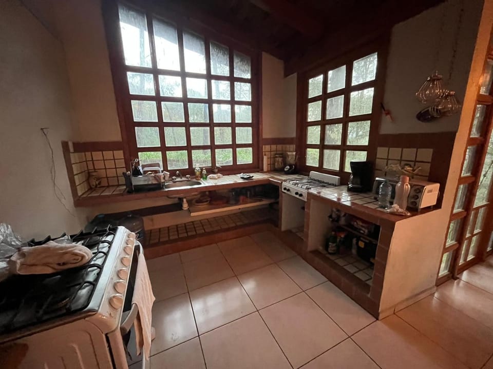 Buena Cabaña limpia y ordenada las camas cómodas así como las almohadas, las cobijas con olor a suavitel, agua caliente en todo momento, los muebles limpios y cómodos, baños limpios y en buen estado, la Cabaña esta dentro del fraccionamiento los cazos así que el acceso es controlado y quedo cerca de la cascada, cuenta con asador para carne asada y el alumbrado ideal para la Cabaña, cuenta con 3 chimeneas, una en la sala y las otras 2 una en cada cuarto, en la parte de afuera hay lugar para estacionar el carro y el terreno es accesible para caminar al rededor de la Cabaña, tiene utensilios para cocina limpios y en buen estado para uso, la cocina es de buen tamaño para cocinar, cuenta con un televisor para conectar señal digital.