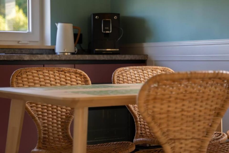 Domki są gustownie urządzone, czyste i doskonale wyposażone – niczego nam nie brakowało. Wnętrze dopracowane w każdym szczególe, co tworzy przytulną i komfortową atmosferę. Cisza i spokój oraz widok na las a z drugiej strony na łąkę - sprzyja odpoczynkowi. Dużym plusem jest szybki i stabilny internet oraz przestronne biurko w jednym z pokoi – świetna opcja dla tych, którzy chcieliby połączyć relaks z obowiązkami zawodowymi. Gospodarze niezwykle mili i pomocni – od pierwszego kontaktu czuliśmy się bardzo dobrze zaopiekowani. Lokalizacja idealna dla osób lubiących jazdę rowerową oraz spacery. Sama miejscowość oferuje wiele punktów gastronomicznych (w okresie letnim, nie wiem czy tak jest poza sezonem) oraz piękną promenadę prowadzącą nad morze. Dla osób szukających luźniejszych plaż polecam te położone nieco dalej – przepiękne, szerokie z naturalnymi wydmami. To miejsce zdecydowanie spełniło nasze oczekiwania i chętnie tu wrócimy!