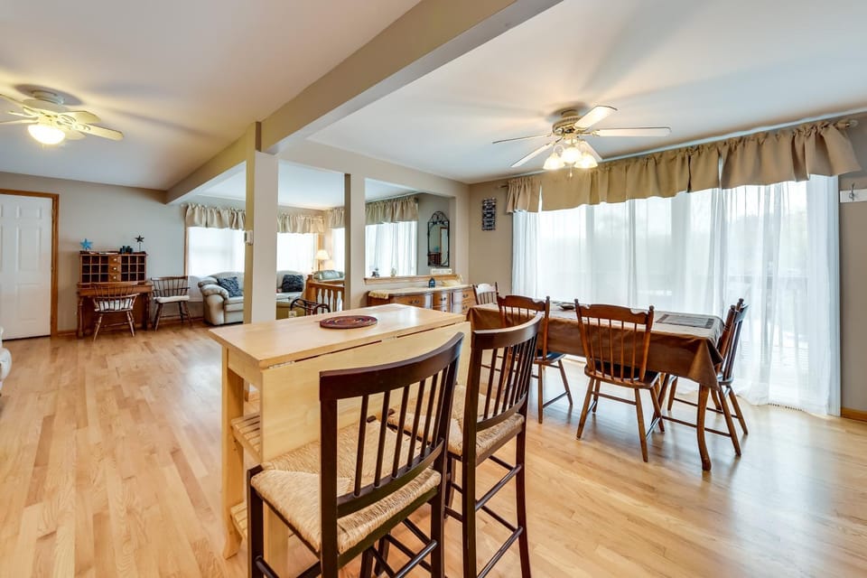 Salem Vacation Home with Dock Steps to Paddock Lake is located in Twin Lakes, just 25 miles from Black Point Historic Preserve and 26 miles from Alpine Valley Music Theatre.