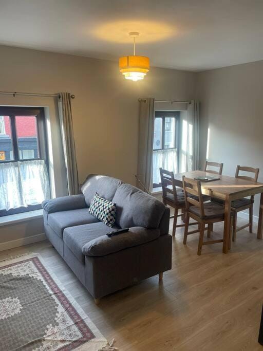 Beautiful decorated apartment above a pub , owner is a gentleman and had lovely welcoming apple tart on arrival, Danny really goes out of his way to make sure you are ok ,pub downstairs is great , Guinness is pure cream here and he does Pizza too if you get hungry,ample car park around the corner was a bonus!