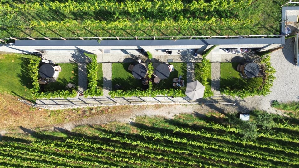 Vista frontale delle montagne suggestiva ed immagino lo sia ancor più in primavera in mezzo al verde del vigneto!