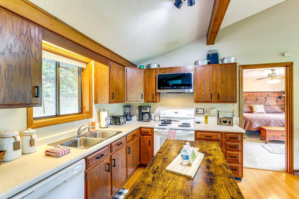 What amenities are available at Maggie Valley Mountain Escape with Fireplace and Deck!?