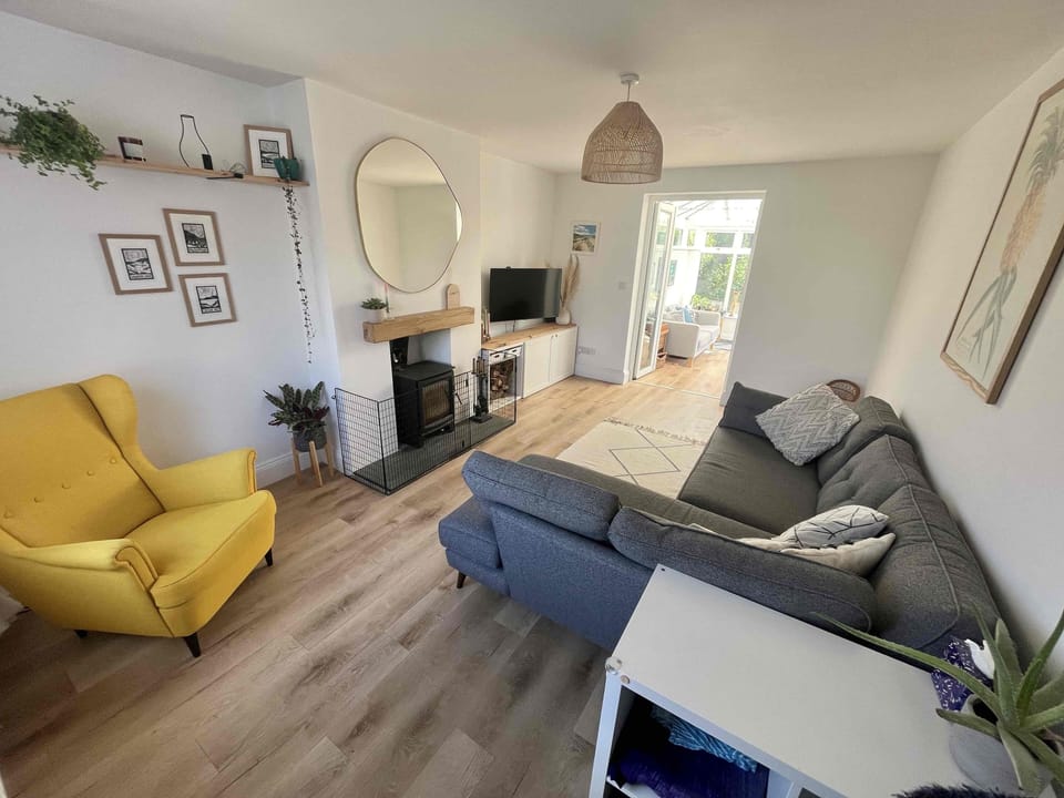 The property sits on a good-sized plot of land with gardens at the rear, with private parking for two cars at the front of the property. At the rear is the main garden with plenty of space for playing, enjoying the BBQ or just relaxing on the patio. A shed in the corner of the garden provides useful for storing bikes and surfboards.