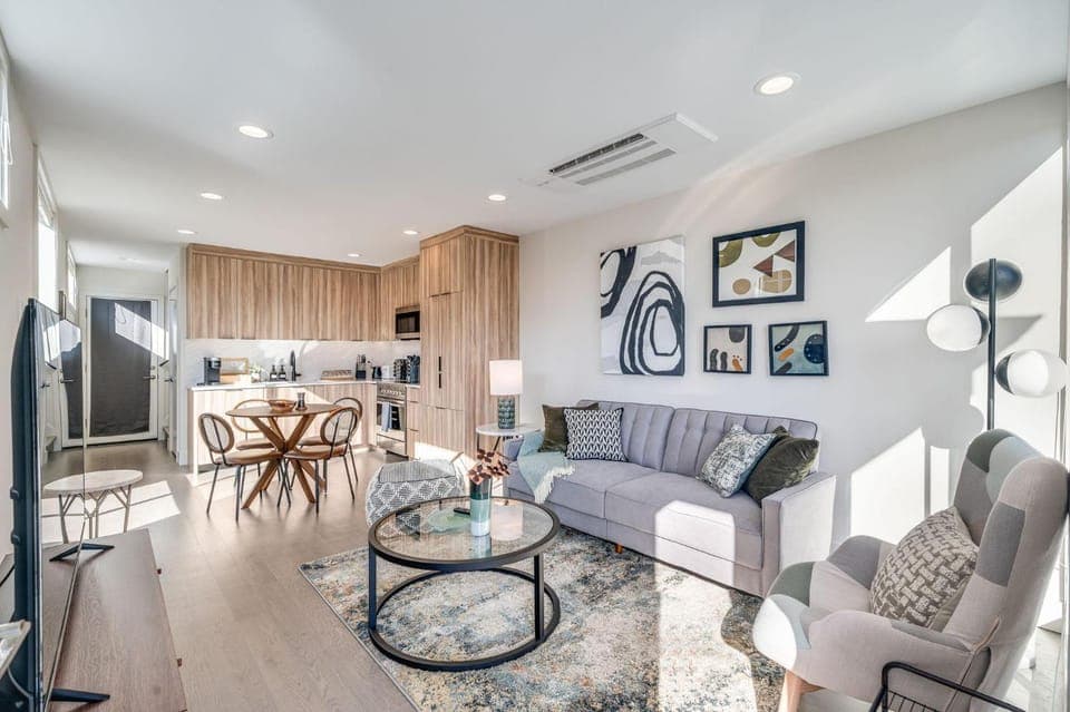 Location near cafes, nice grocery store, buses, easy walk to heart of Fremont. Outdoor rooftop patio.