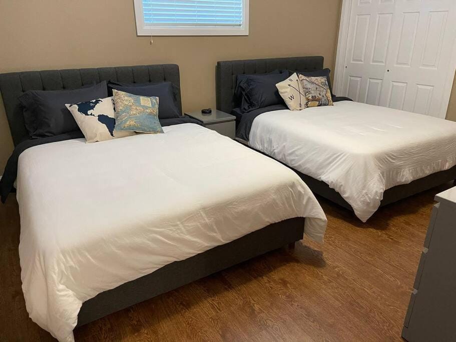 The location was perfect for us. It was very cool in this terrible heat wave. It has lovely charging stations on the lamps which was so convenient. We didn't really use them but there were three TVs which is super. There is tons of space! A large kitchen table was great for puzzling and playing games. The beds and bedding were perfect. The kitchen is well equipped and also large. The laundry room was also handy for our longer stay. Great parking. There are almost too many things that were positive to list them all. Above all the owners are very kind and quick to answer any questions!
