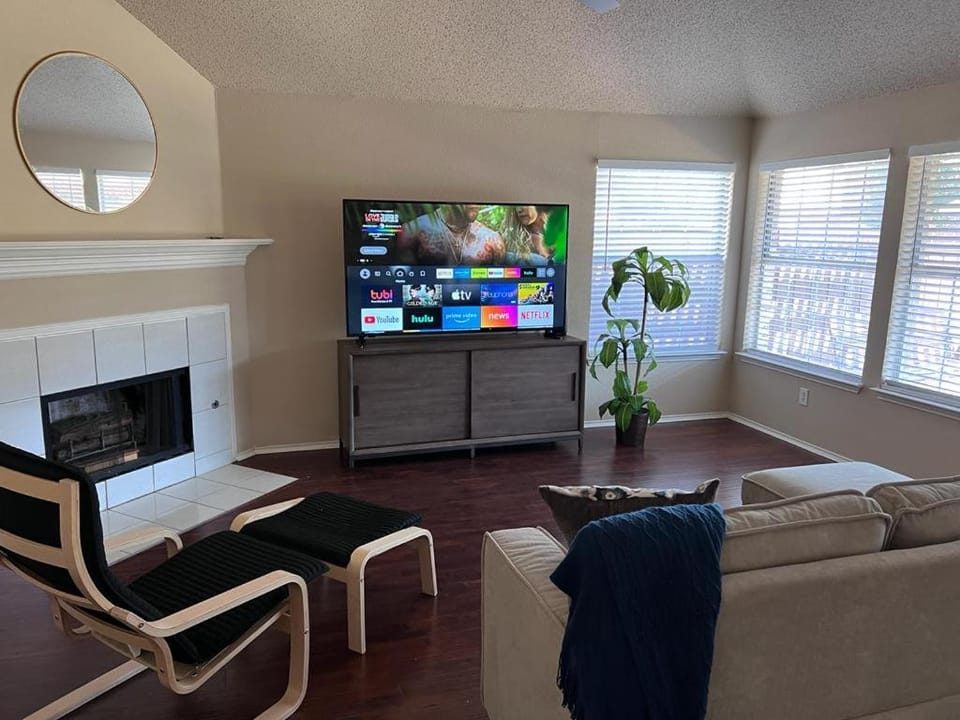 Enjoy the best of Frisco in our House, Charming 4-bedroom house Fast Wi-Fi + All room Smart TV's +Deck/Patio The Colony. A stunning property with amenities including Family friendly and Non-smoking, and more.