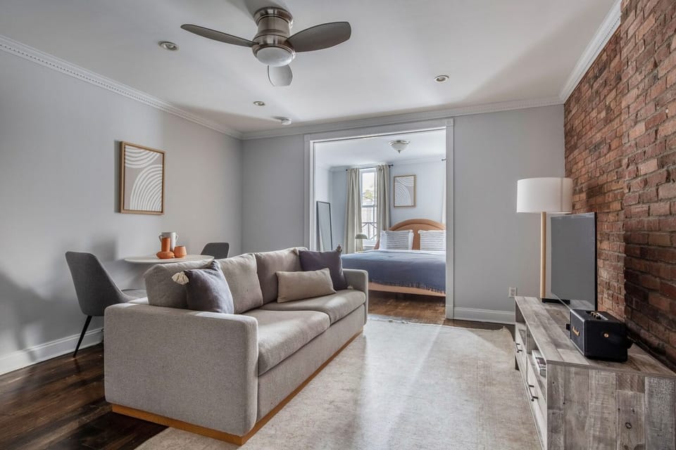 Thoughtfully designed with bespoke finishes, modern furnishings, and a fully equipped kitchen, you’ll enjoy that “I’m home” feeling with this Blueground apartment. Whether you’re lounging in your pretty living room streaming the latest and greatest entertainment on the smart TV or premium wireless speaker, or getting some well-earned rest on the superior quality mattress with fully stocked linens, you’ll fall in love with everything this West Village apartment has to offer. This apartment also offers in-apartment laundry.