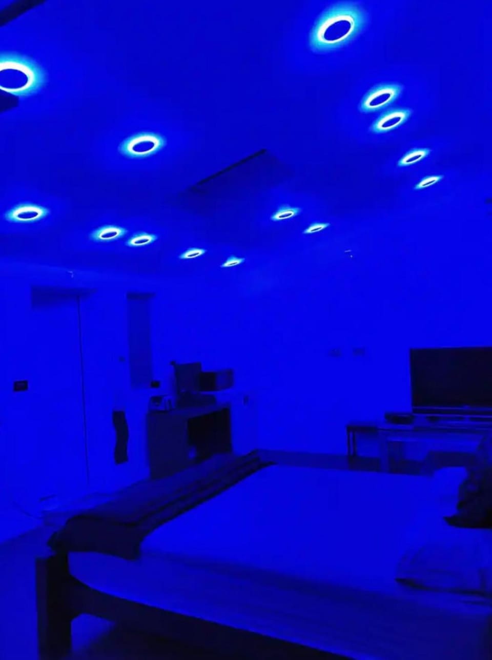 Almost everything especially the blue lights, bathroom and the bedding