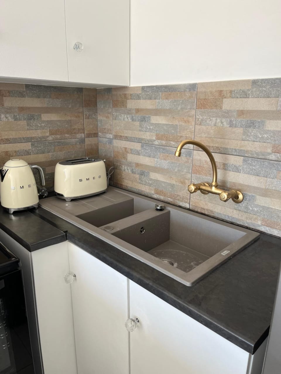 Walls and cupboards could've been repainted; toilet/bathrooom door has a gap, it doesn't close properly and opened on its own while someone was using the bathroom ... please install a proper door