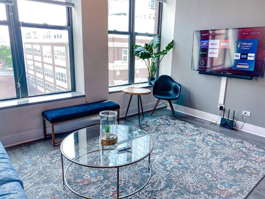Beautiful 2BR with Smart TV, Gym Access & Parking Close to McCormick Place, Museums & Lake Michigan