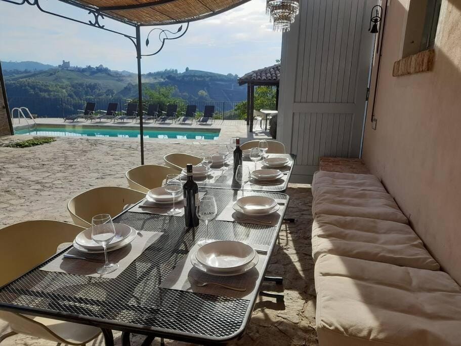 The location was excellent in the middle of Piedmont with 20-30 minutes drive to pletthora of wonderful vineyards and small villages. My recommendation is to Rent multipe small cars instead of minibus for a bigger group due to the roads and also parking at the villa and in the villages.
