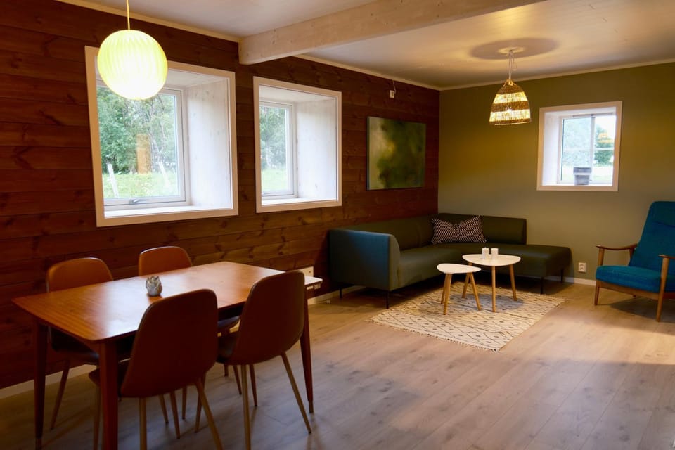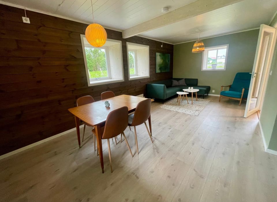 The location is quiet which is what we wanted. With a car this is only 20 mins from Leknes and many walks accessible locally within 30 mins.