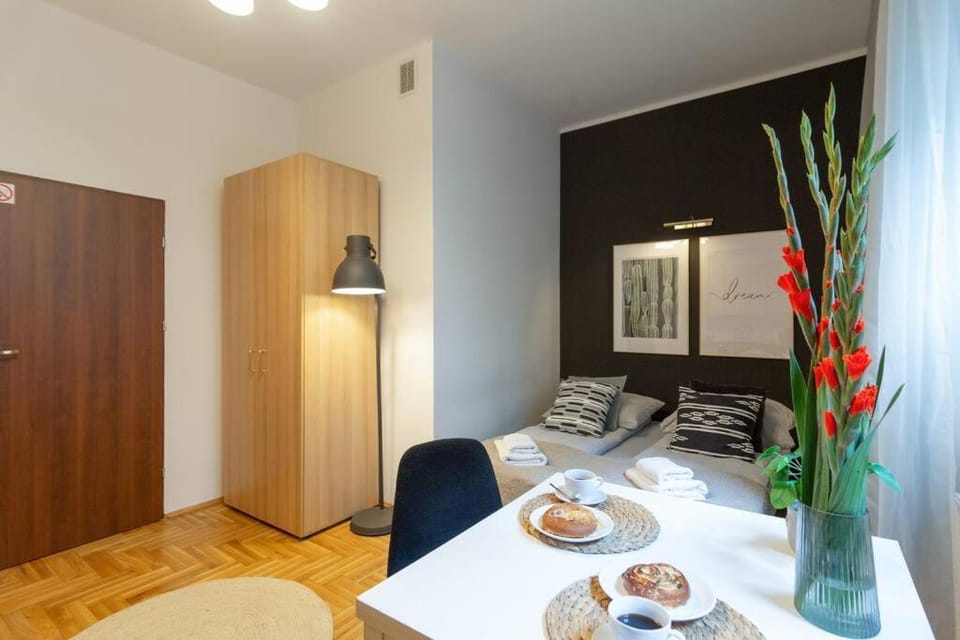The host sent all information on how to get to the apartment the day before my arrival, so I did not stress about that. Apartment's location is fantastic in a quiet area walkable to the old town. Near Plac na Stawach with bakeries and fresh vegetables and fruits. The apartment is lovely, with a comfy bed and everything that I need in the kitchen .