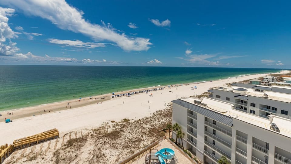 Indulge in a peaceful retreat at Beachfront 4BR, Lazy River/Slide, new complex!, our elegant Apartment in Orange Beach. Enjoy amenities including Air conditioning, Dryer and WiFi/Internet, and more.
