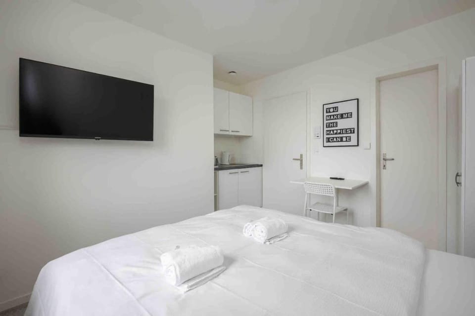 The room is really small, keep in mind when traveling with a big luggage. The bed sides has no electrical outlet for you need to charge your phone from the kitchen table.