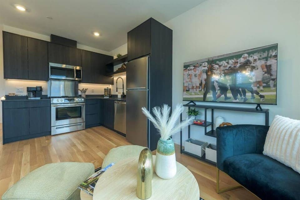 The unit is nicely updated, clean, comfortable beds, lots of light, quiet area, seemingly safe area, an introductory coffee service was provided as well as a few basics left in the cabinets (like oil), couch was comfortable, good TV, good appliances, and some good views - you can the bay and see the Space Needle a little bit.