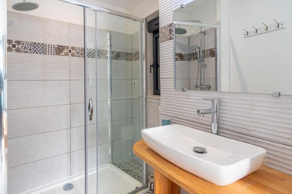 Le logement bien décoré, agréable et lumineux. La mer juste à côté, top ! Chaque chambre avait soit une douche, soit une baignoire ! 3 toilettes en tout, important quand on est nombreux !