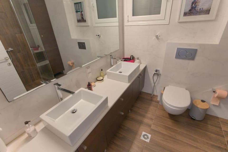 The apartment is very spacious and has an amazing view. There are 3 bedrooms with queen size beds and TV, 3 bathrooms, a kitchen with all the appliances you can think of, a dining room and a sitting room (open space) and a wide bright terrace.