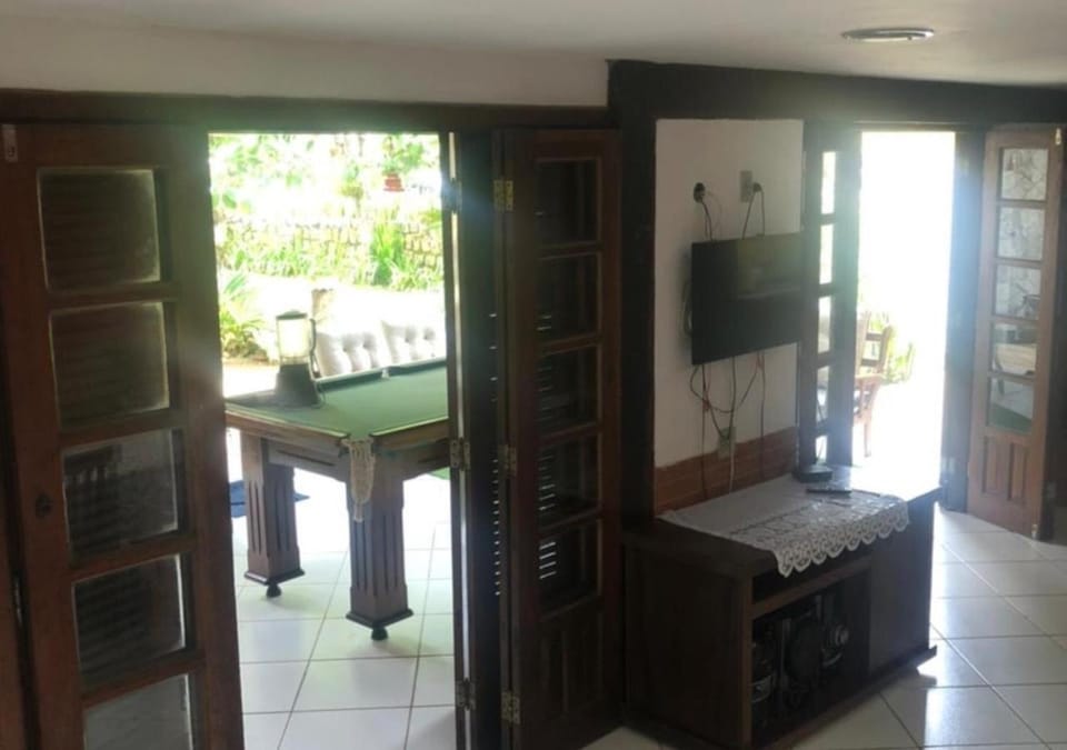 A Casa bem ampla e parece um labirinto com vários cômodos a se descobrir, com um jardim lindo, a sala é bem espaçosa, tem um ambiente agradável com jogos de sinuca e totó. O mais surpreendente foi o chuveirão que parece uma cachoeira de tão forte e a última suite do terceiro andar, que tem um closet, varanda e uma banheira no box. Amamos também a distância da praia que não dá nem 1 rua em linha reta. Dá pra ver a praia saindo no portão! amamos a estadia e retornaremos outras vezes. Parabéns ao caseiro e ao Michel e Ana pela disponibilidade em qualquer situação.