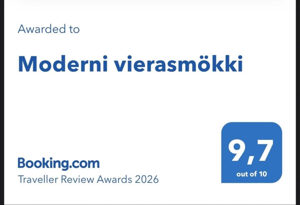 Moderni vierasmökki offers accommodations in Mikkeli, 2.2 miles from Visulahti Amusement Park and 6.9 miles from Golf-Porrassalmi. This property offers access to a terrace, free private parking, and free Wifi.