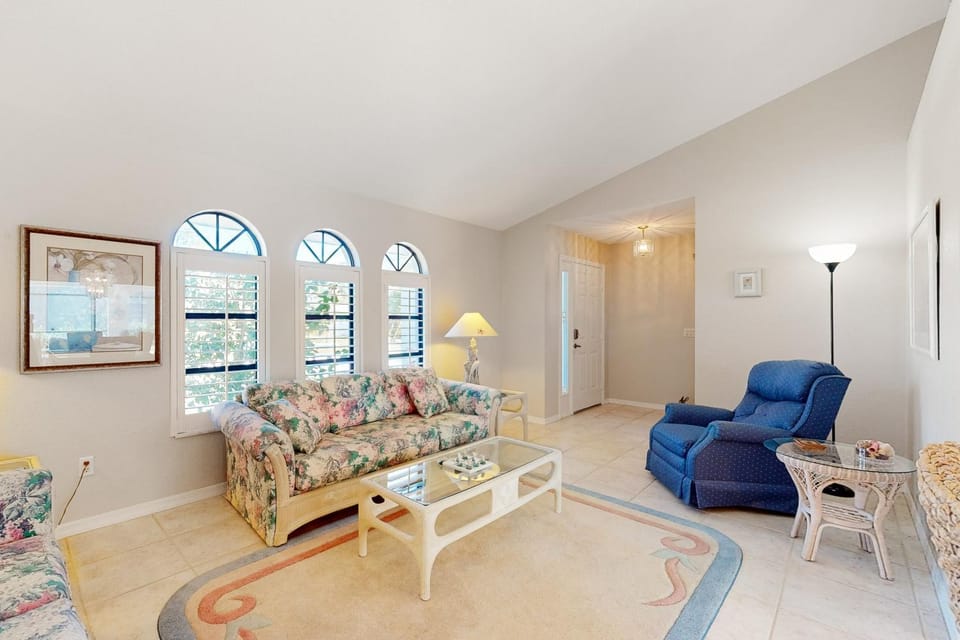 Indulge in a peaceful retreat at Heated Saltwater Pool, Pet Friendly, close to beaches, our elegant House in Port Charlotte. Enjoy amenities including Air conditioning, Dryer and WiFi/Internet, and more.