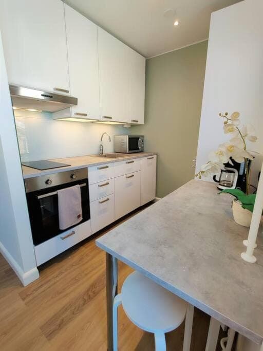 Todella siisti ja hyvällä maulla sisustettu! Sijainti erinomainen, koska linja-autoasema ja kaikki palvelut lähellä. Rauhallinen talo. Ei kuulunut mitään ääniä. Mukava isäntä!