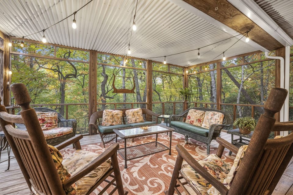 ~Multiple spaces to enjoy the outdoors with a large screened in porch w/porch swing, outdoor dining, and listen to the babble of Greybeard Creek