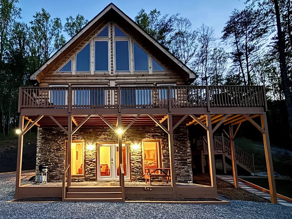 This cabin is split into two units, each with complete kitchens, dining area, living area and outdoor space. This listing offers the ground floor with two bedrooms and their private bathrooms. There is also a separate upper unit with two bedrooms and private bathrooms on the main floor and a third floor bedroom with a private bathroom. These two units are separated by a stairwell and locked doors. The upstairs unit is a separate rental not included in this listing. However the upper and lower units can be rented together by unlocking the stairwell for a total of 5 bedrooms should you have a need for a larger party. You can go to "Creekside Cabin Entire Unit" listing if you chose to rent the entire cabin.
